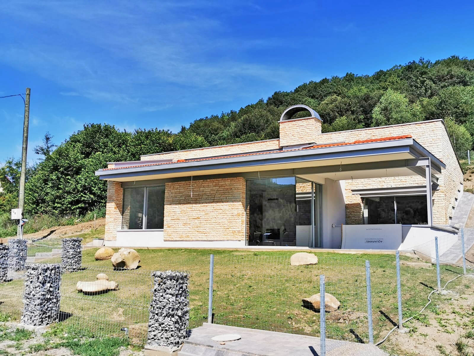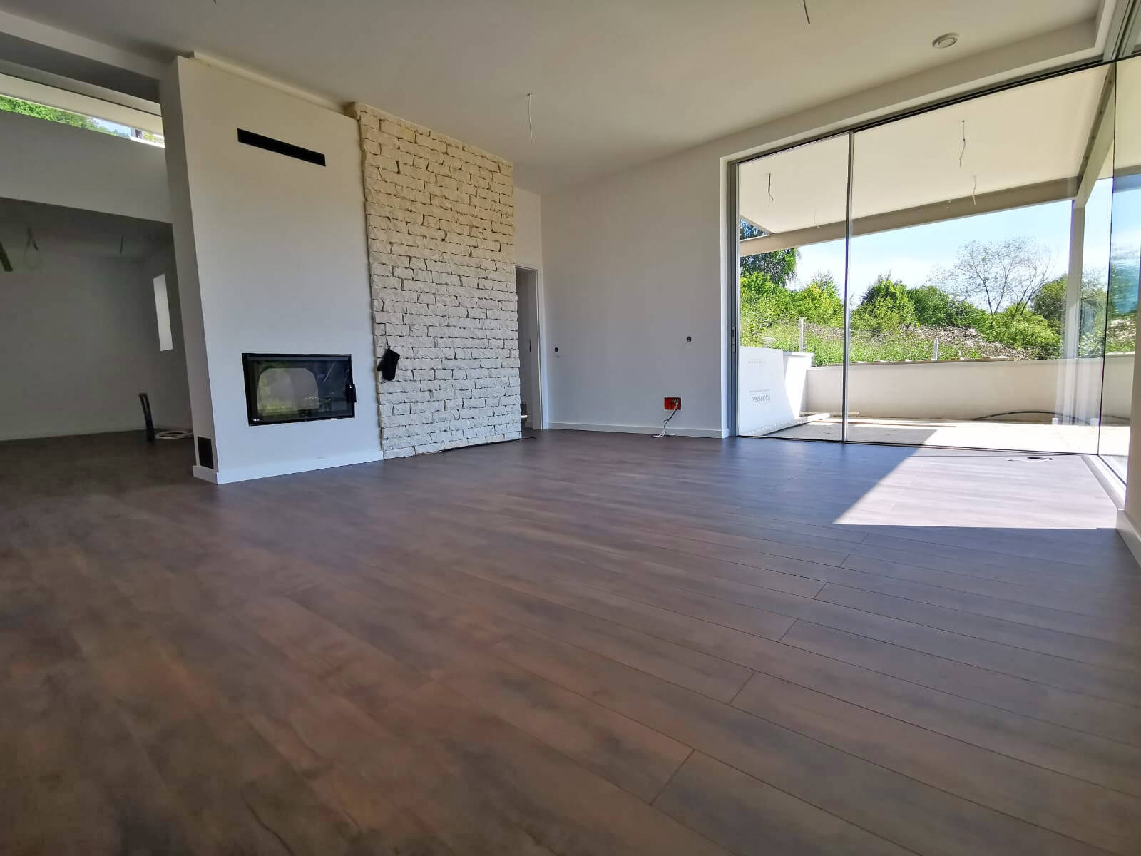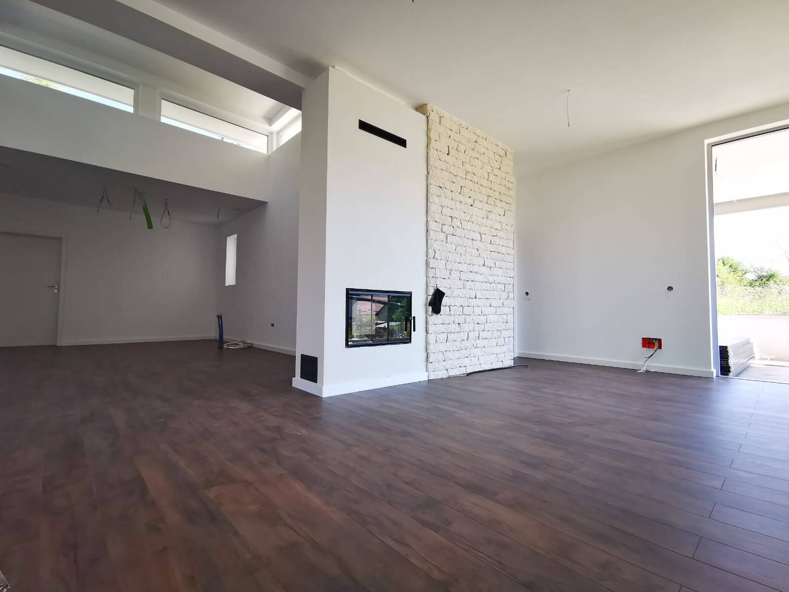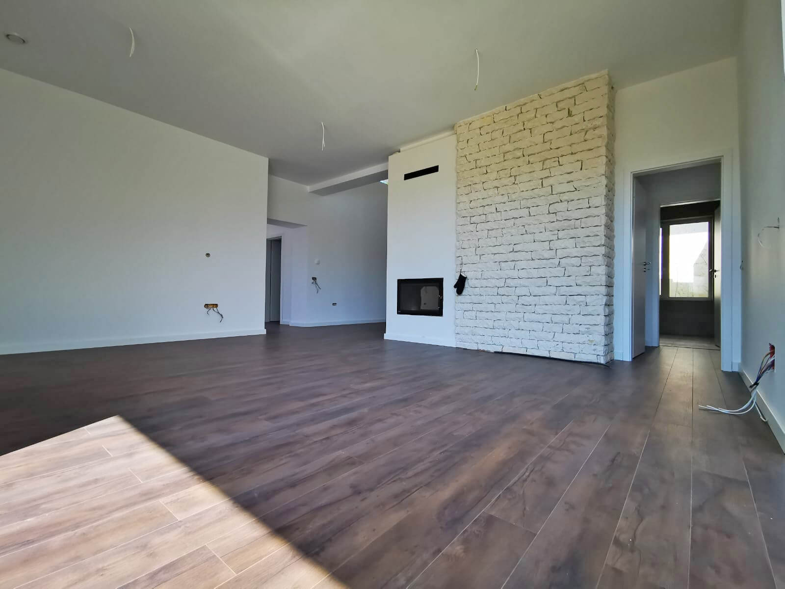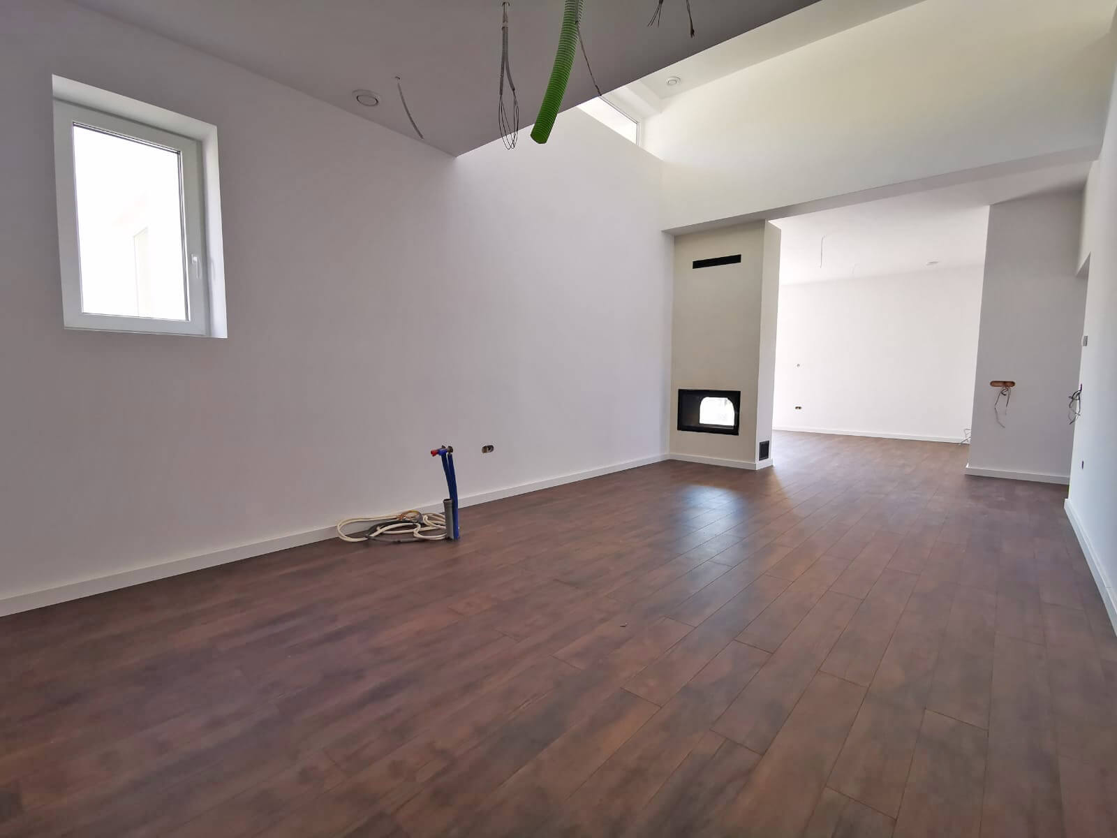 Se vinde finisată parțial în interior, dotată cu semineu, sistem de încălzire prin pardoseală pe pompă de caldură, sistem de ventilație cu recuperare de căldură, panouri solare.